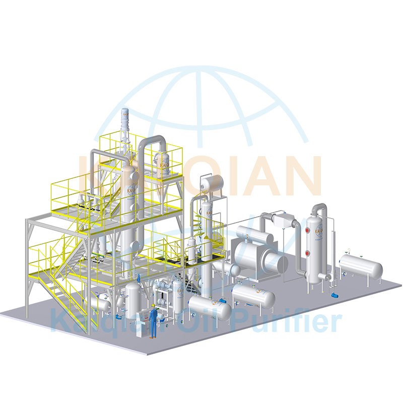 2.1.轮胎油塑料油精馏设备装置适用于裂解后的轮胎毛油、塑料毛油,通过减压精馏提纯,解决了裂解设备不能精馏毛油黑油难题。
