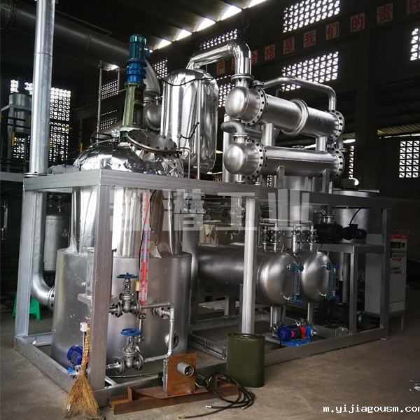 3.1 采用高真空刮膜蒸发器,分离程度高,远高于传统蒸馏器。普通的蒸发器在300℃的时候就开始碳化结焦,导致回收的油品质量明显下降,且回收率也明显降低。因废机油里的胶质,沥青,游离碳等杂质非常多,所以采用高真空刮膜蒸发器可有效的防止这些物质结焦,有效保障设备长期运行的同时还能提高废油产量。