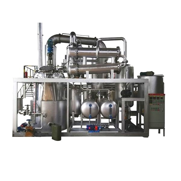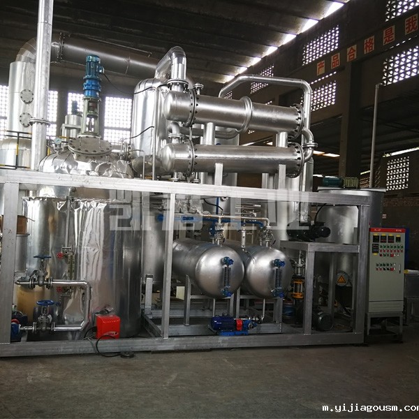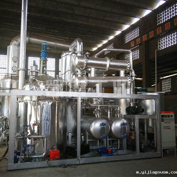 废轮胎油炼油设备适用于轮胎裂解毛油、塑料裂解毛油的精馏提纯,该工艺在高真空环境中对裂解后的轮胎油、塑料油进行减压精馏产出高品质燃料油,从而提高裂解油的市场用途。