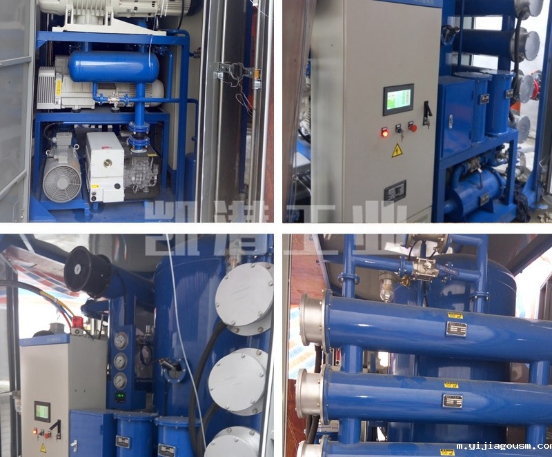 110KV-330KV的变压器绝缘油净化处理可以达到乙炔值水分为零,无杂质污染,提升油的使用周期,也适用于高等级新油,进口油的深度处理,本机增加了罗茨泵增压系统,二次高真空分离系统,三维立体闪急快速蒸发系统,其脱水、脱气、脱乙炔、、除酸值、脱除游离炭等,处理后油极限耐压值更高,既可作滤油使用。也可作为独立真空源对变压器设备进行真空干燥注油功能。