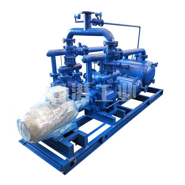 化工真空机组在一般情况下,选用水环泵作为前级泵比其它真空泵更为有利,这主要是由于它能够抽除大量的可凝性蒸汽,特别是当气镇油封机械真空泵排除可凝性蒸汽能力不够,或使用的溶剂能使泵油恶化而影响性能,或者是真空系统不允许油污染的时候更为明显。